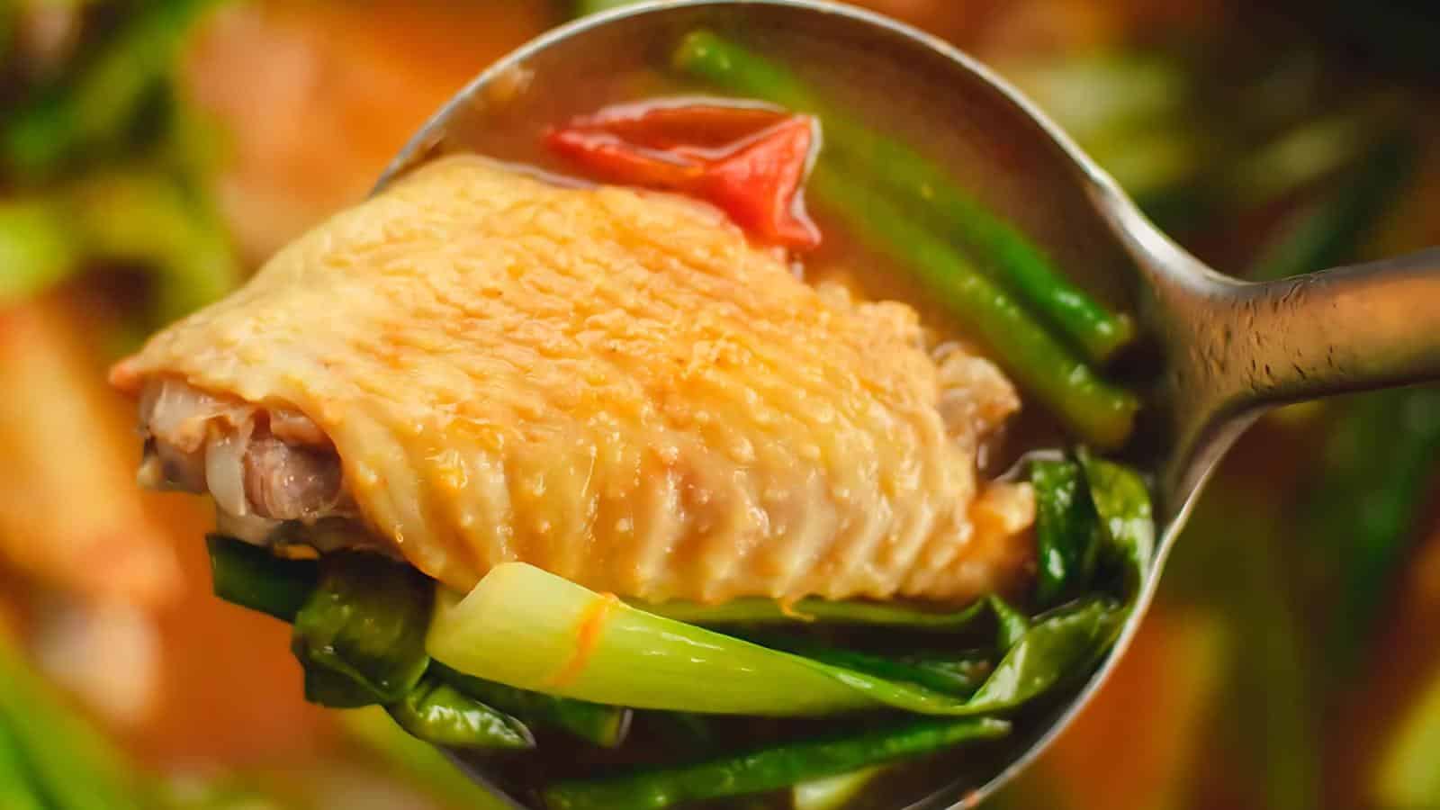 A tangy and savory chicken soup made with tamarind, this dish is both refreshing and comforting. It's an easy-to-make recipe that highlights the balance of sour and savory flavors in Filipino cuisine. The vibrant mix of vegetables and broth makes it a family favorite.